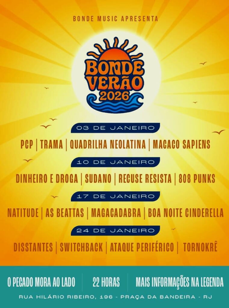 O escaldante verão carioca segue e com ele o Festival Bonde Verão. A iniciativa é da Bonde Music acontece aos sábados no Bar O Pecado Mora ao Lado. Os ingressos estão a venda, com entrada gratuita para PCDs e pessoas trans. Neste sábado (17/01), shows com Boa Noite Cinderela, Magacadabra, Natitude e As Beattas com quem conversamos, na Coluna 1,2,3,4… da Rock Press.