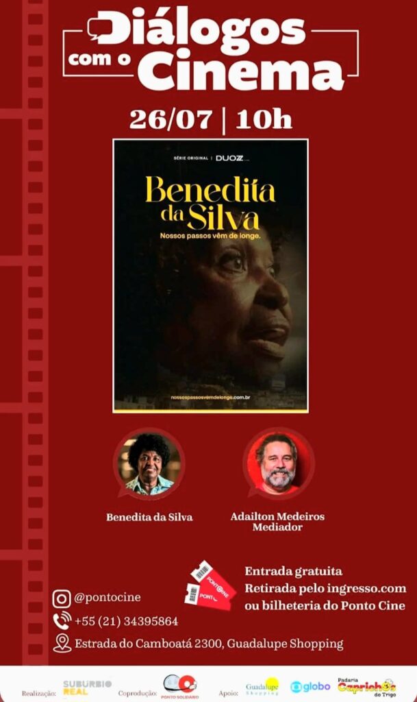 “Diálogos com Cinema” acontece neste sábado (26/07), no Ponto Cine, Guadalupe (RJ).  E, dessa vez, exibindo a série documental “Benedita da Silva – Nossos Passos Vêm de Longe”, uma produção da Duozz Filmes. Logo após, acontece um bate-papo com a Deputada Federal. A entrada é gratuita, mas as vagas são limitadas. Leia mais na matéria que segue!