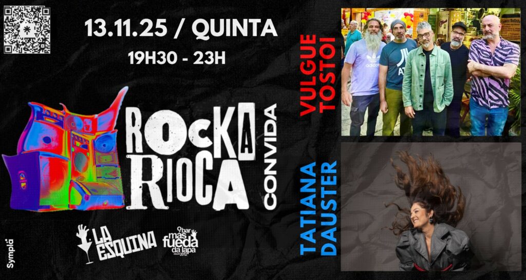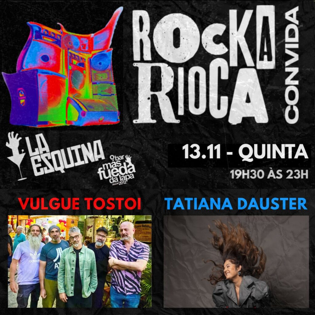 Nesta quinta-feira,(13/11), acontece a 27ª edição do Rockarioca Convida no tradicional La Esquina. No palco, shows da cantora e compositora Tatiana Dauster e uma raríssima apresentação da banda Vulgue Tostoi. O evento começa às 19:30 e os ingressos seguem a venda. Recomendamos!